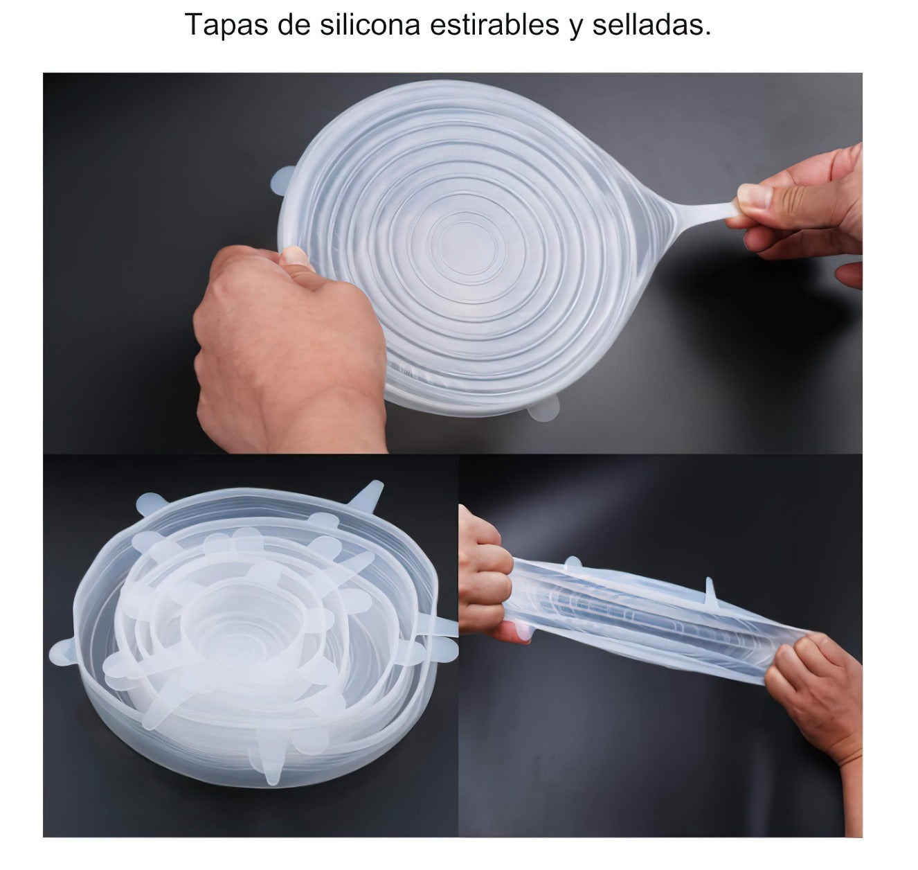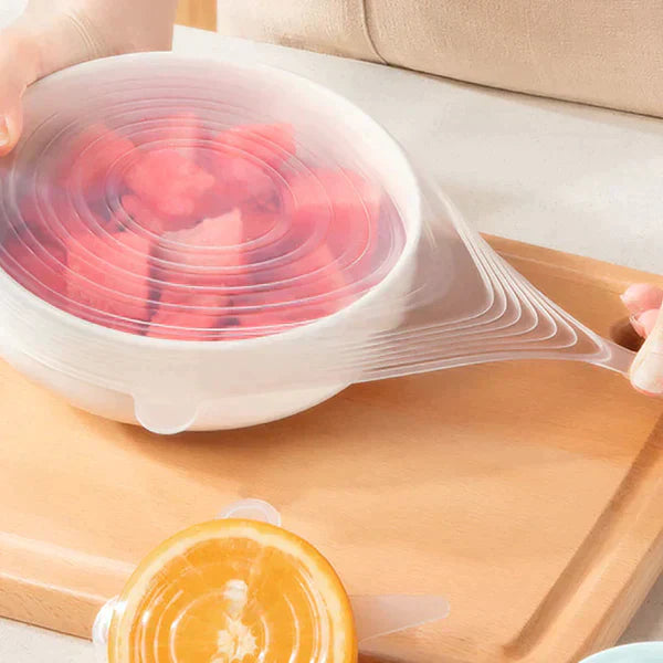 Com sua incrível elasticidade, estas tampas se ajustam a todos os recipientes, frutas e pratos, mantendo os alimentos frescos e seguros, sem a necessidade de plásticos descartáveis.